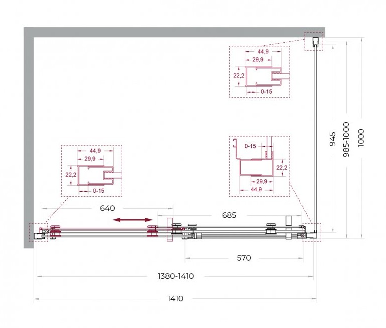 ДУШЕВОЙ УГОЛ BELBAGNO MARINO 2 AH 1 1400X1000 ОРУЖЕЙНАЯ СТАЛЬ, ПРОЗР.СТЕКЛО