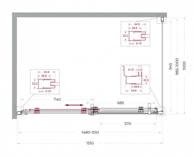 ДУШЕВОЙ УГОЛ BELBAGNO MARINO 2 AH 1 1500X1000 ХРОМ, ПРОЗР.СТЕКЛО
