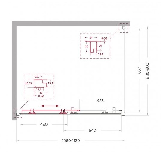 Регулировка ширины: предусмотрена за счет боковых профилей
