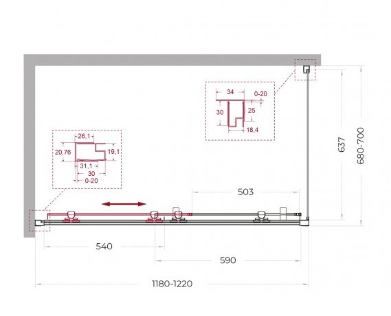 Регулировка ширины: предусмотрена за счет боковых профилей