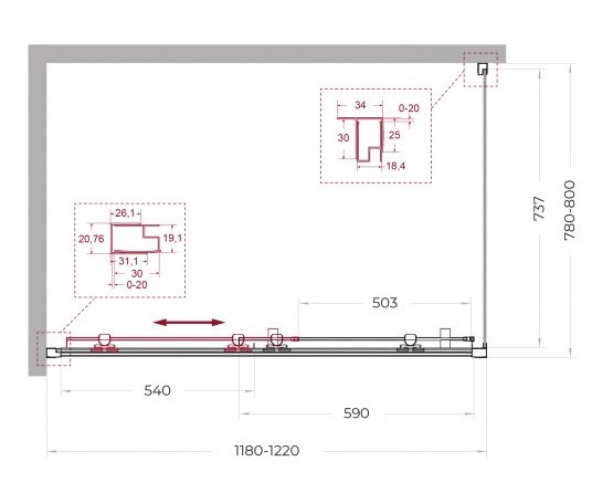 Регулировка ширины: предусмотрена за счет боковых профилей