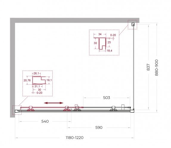Регулировка ширины: предусмотрена за счет боковых профилей