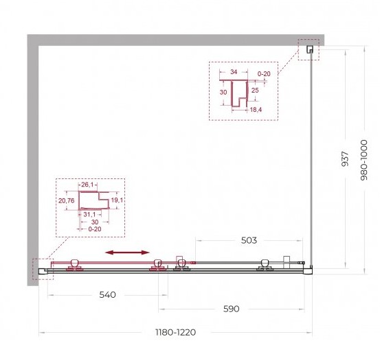 Регулировка ширины: предусмотрена за счет боковых профилей