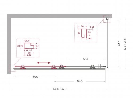 Регулировка ширины: предусмотрена за счет боковых профилей