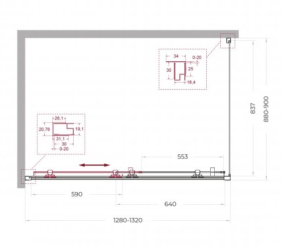 Регулировка ширины: предусмотрена за счет боковых профилей