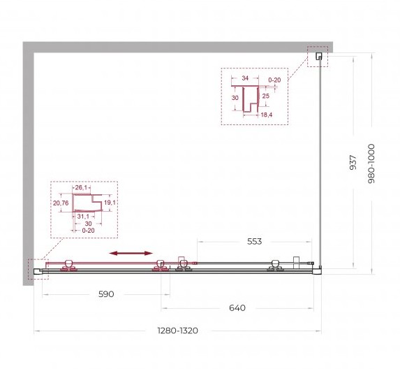 Регулировка ширины: предусмотрена за счет боковых профилей