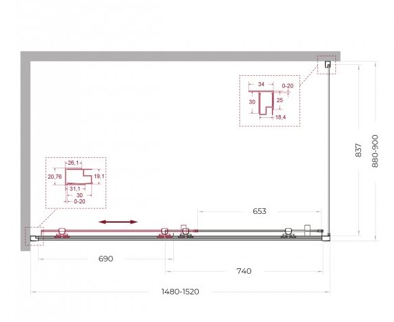 Регулировка ширины: предусмотрена за счет боковых профилей