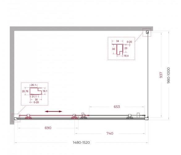 Регулировка ширины: предусмотрена за счет боковых профилей