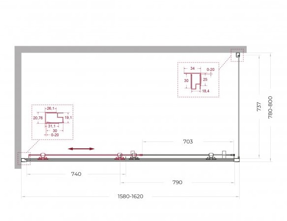 Регулировка ширины: предусмотрена за счет боковых профилей