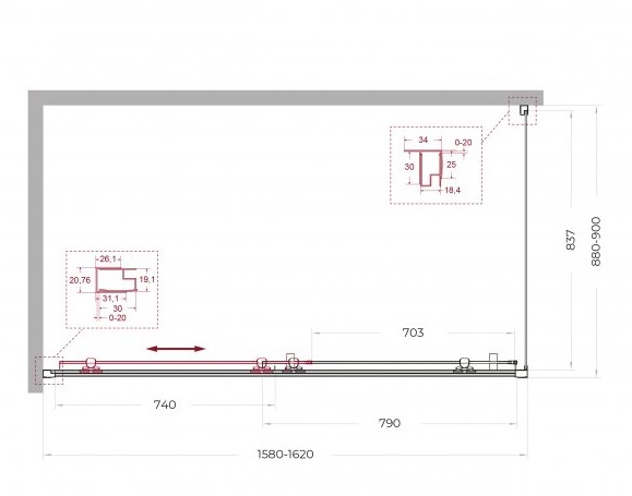 Регулировка ширины: предусмотрена за счет боковых профилей