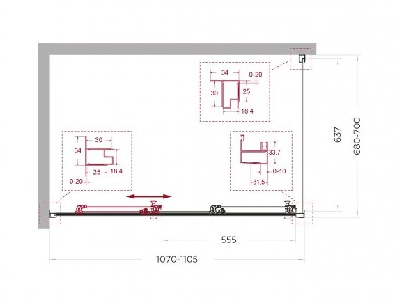 Цвет профиля: хром (Cr), матовый черный (NERO), Сатин (IN)