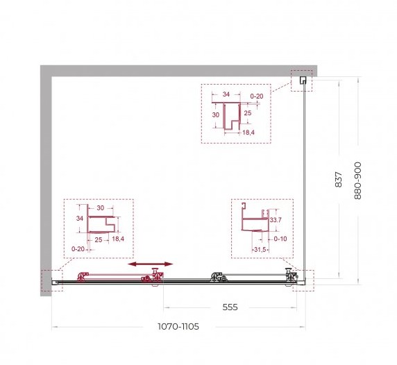 Цвет профиля: хром (Cr), матовый черный (NERO), Сатин (IN)