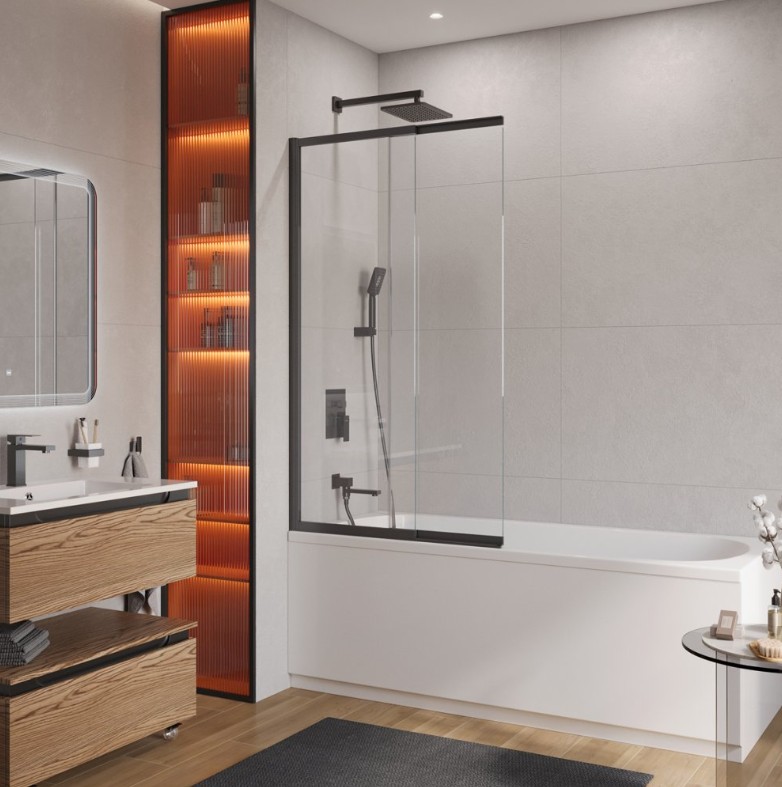 ШТОРКА ДЛЯ ВАННЫ CEZARES SLIDER-FIX 900X1500 ЧЕРНЫЙ, ПРОЗР.СТЕКЛО