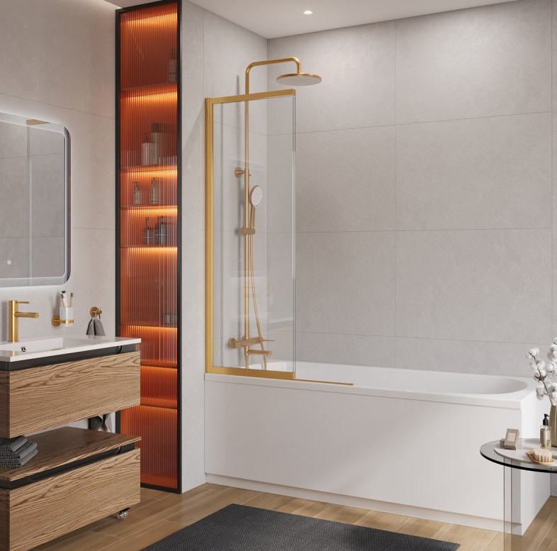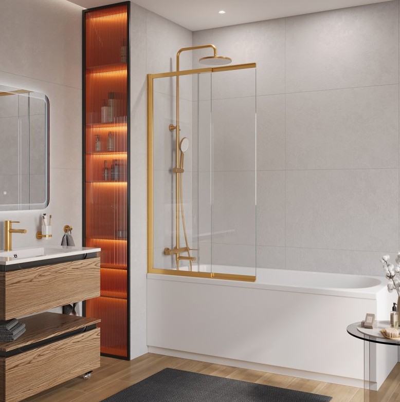 ШТОРКА ДЛЯ ВАННЫ CEZARES SLIDER-FIX 900X1500 ЗОЛОТО БРАШИРОВАННОЕ, ПРОЗР.СТЕКЛО
