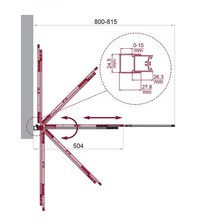 Конструкция двери: поворотная цилиндрическая петля и выдвижная створка