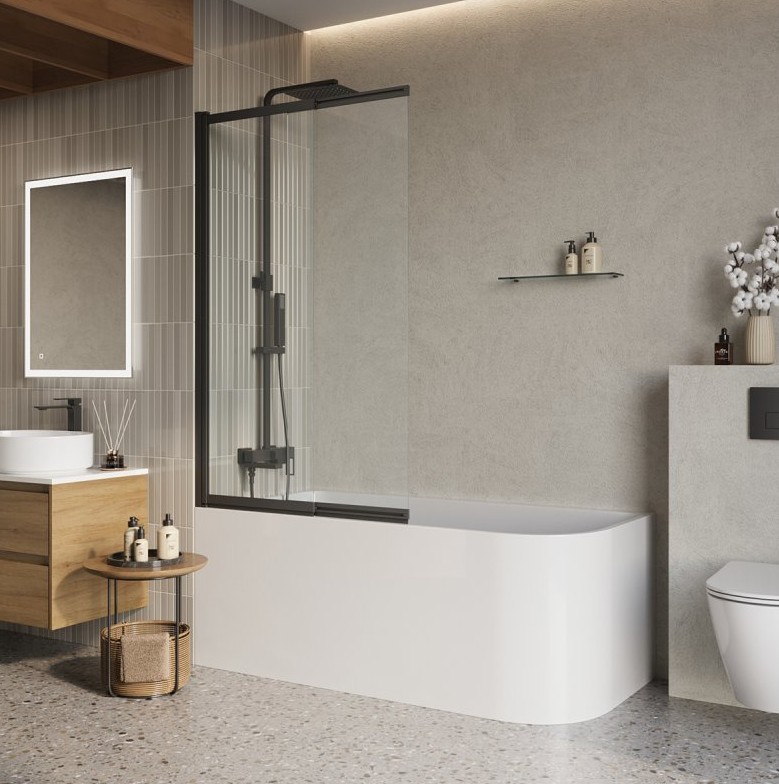 ШТОРКА ДЛЯ ВАННЫ BELBAGNO LUCE-VF-11 900X1450 ЧЕРНЫЙ, ПРОЗР.СТЕКЛО