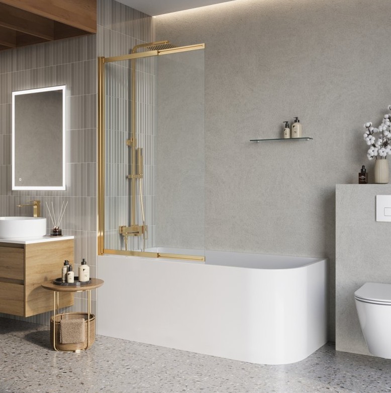 ШТОРКА ДЛЯ ВАННЫ BELBAGNO LUCE-VF-11 900X1450 ЗОЛОТО, ПРОЗР.СТЕКЛО