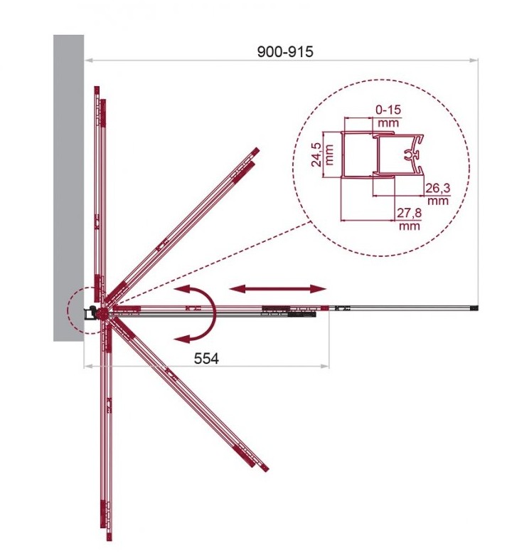 Конструкция двери: поворотная цилиндрическая петля и выдвижная створка