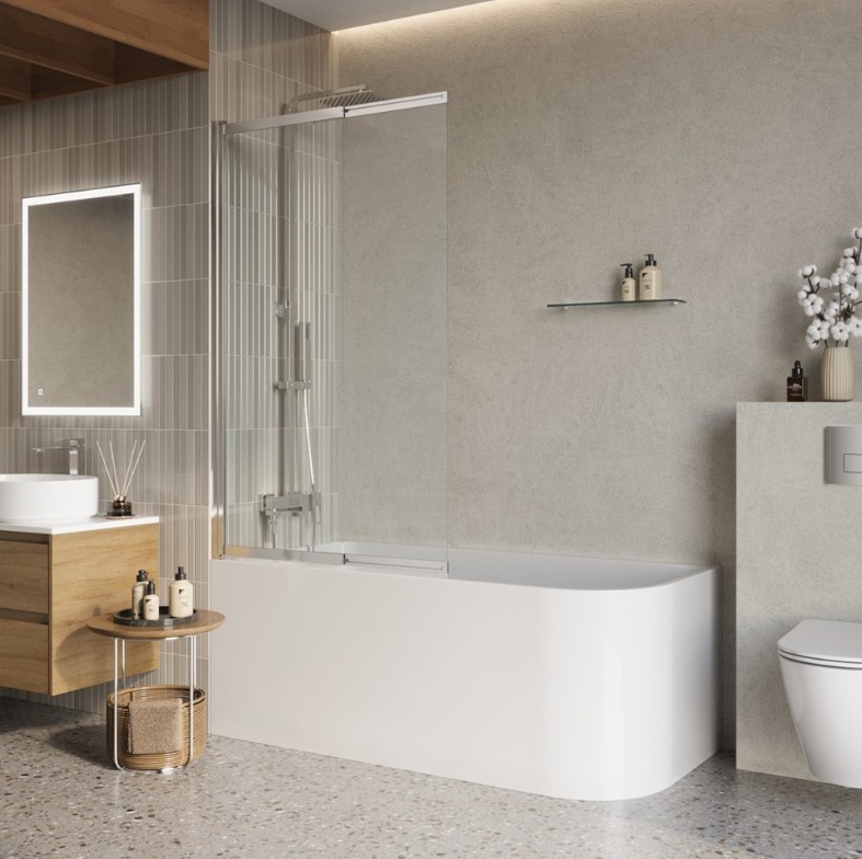 ШТОРКА ДЛЯ ВАННЫ BELBAGNO LUCE-VF-11 1000X1450 ХРОМ, ПРОЗР.СТЕКЛО