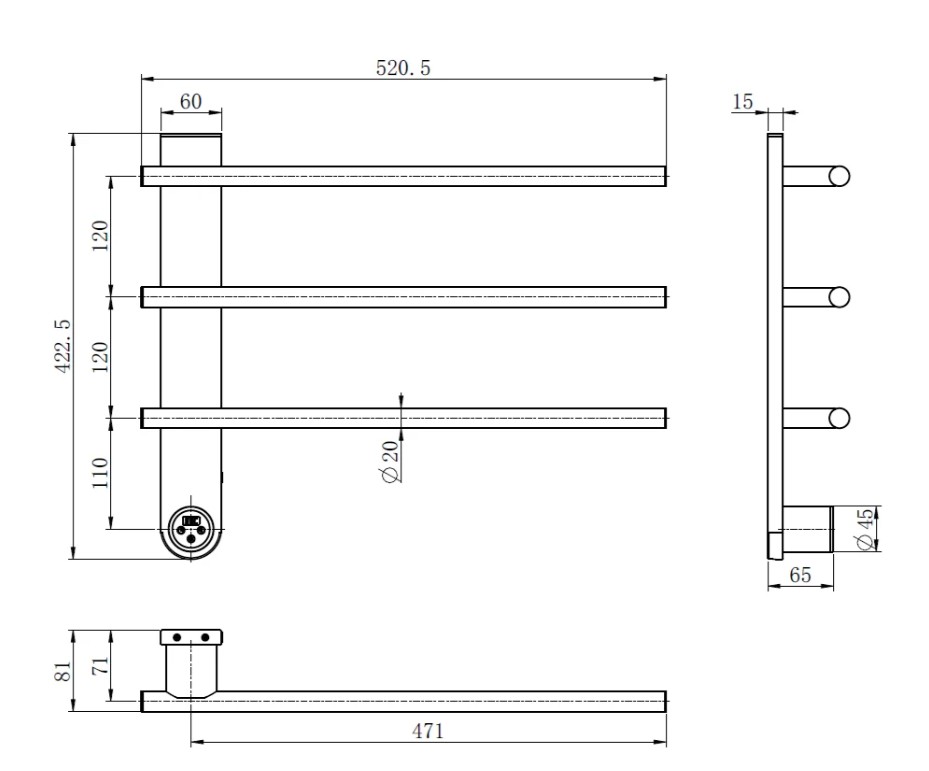 ПОЛОТЕНЦЕСУШИТЕЛЬ ЭЛЕКТРИЧЕСКИЙ AQUAME 520*384 ЧЕРНЫЙ МАТОВЫЙ