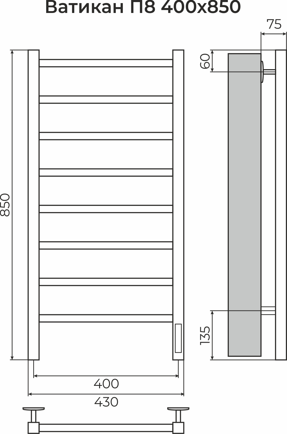 ПОЛОТЕНЦЕСУШИТЕЛЬ ЭЛЕКТРИЧЕСКИЙ TERMINUS ВАТИКАН 400Х850 П8 ХРОМ