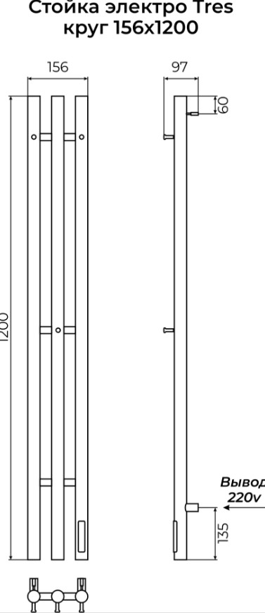 ПОЛОТЕНЦЕСУШИТЕЛЬ ЭЛЕКТРИЧЕСКИЙ TERMINUS СТОЙКА TRES КРУГ 1200 П3 ГРАФИТ