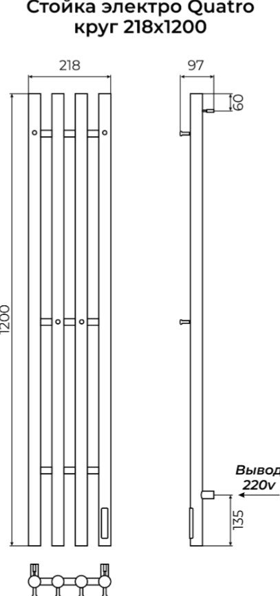 ПОЛОТЕНЦЕСУШИТЕЛЬ ЭЛЕКТРИЧЕСКИЙ TERMINUS СТОЙКА QUATRO КРУГ 1200 П4 ХРОМ