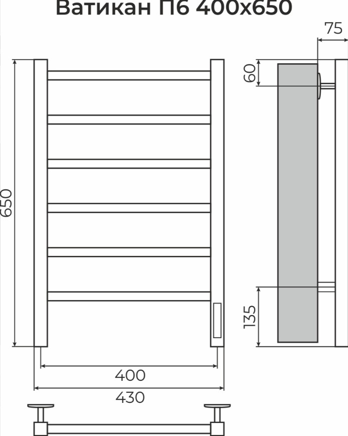ПОЛОТЕНЦЕСУШИТЕЛЬ ЭЛЕКТРИЧЕСКИЙ TERMINUS ВАТИКАН 400Х650 П8 ХРОМ