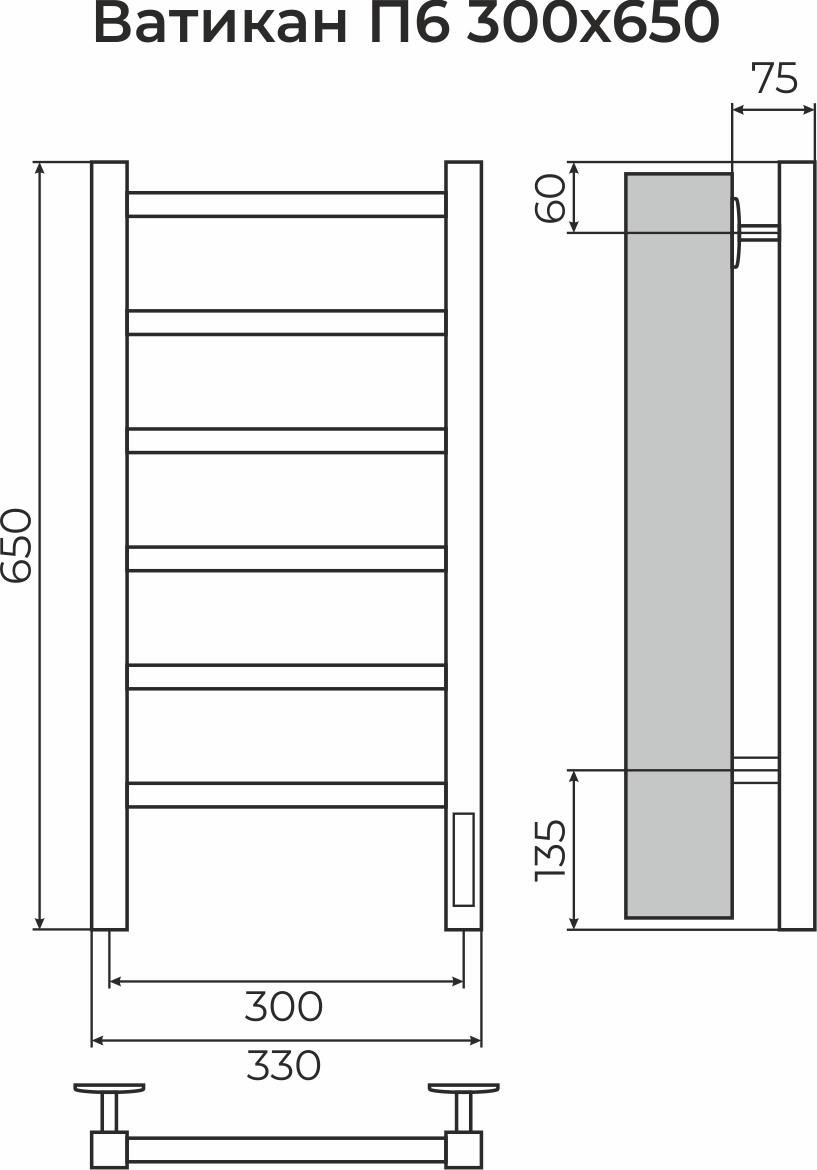 ПОЛОТЕНЦЕСУШИТЕЛЬ ЭЛЕКТРИЧЕСКИЙ TERMINUS ВАТИКАН 300Х650 П6 ХРОМ
