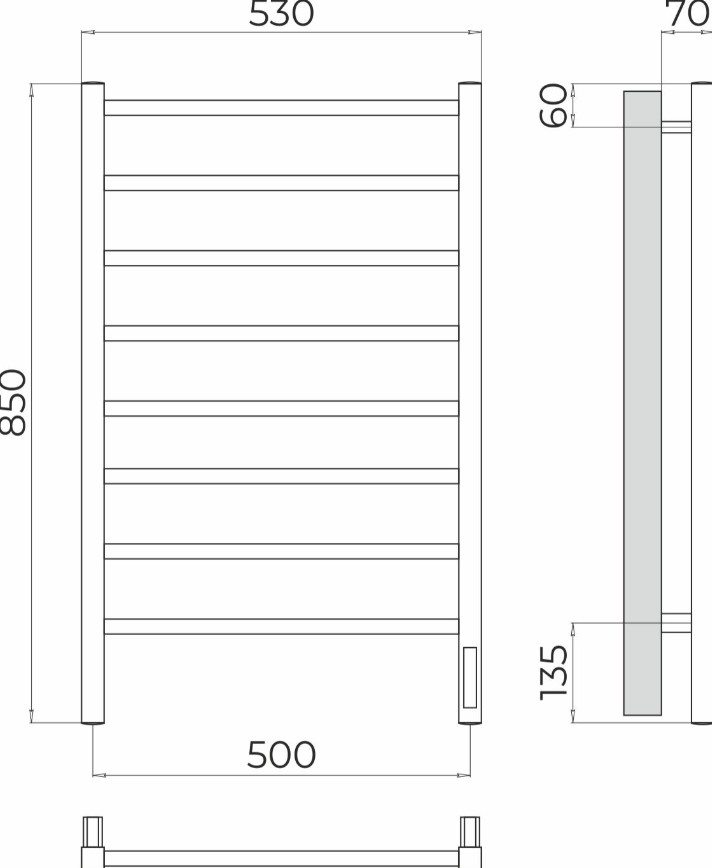ПОЛОТЕНЦЕСУШИТЕЛЬ ЭЛЕКТРИЧЕСКИЙ TERMINUS ВАТИКАН 500Х850 П8 ХРОМ
