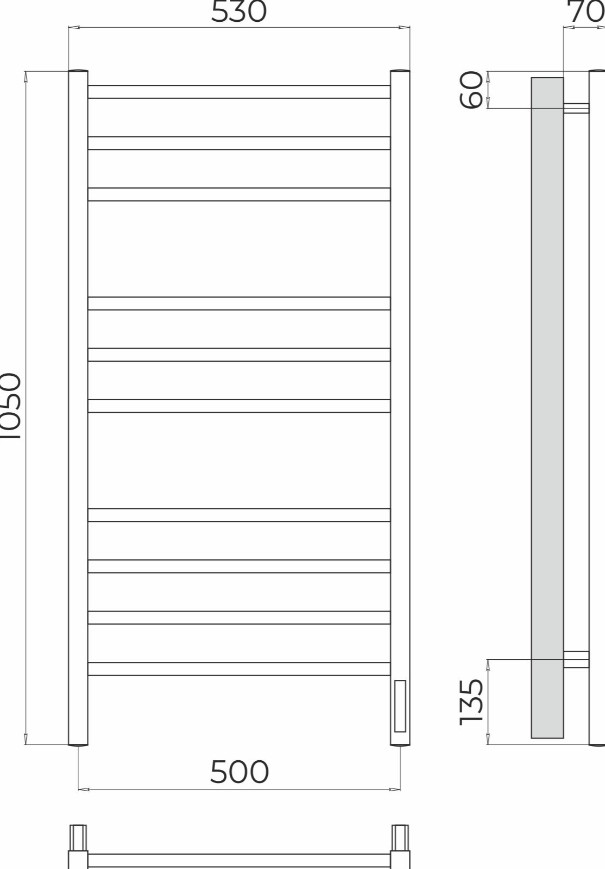 ПОЛОТЕНЦЕСУШИТЕЛЬ ЭЛЕКТРИЧЕСКИЙ TERMINUS ВАТИКАН 500Х1050 П10 ХРОМ