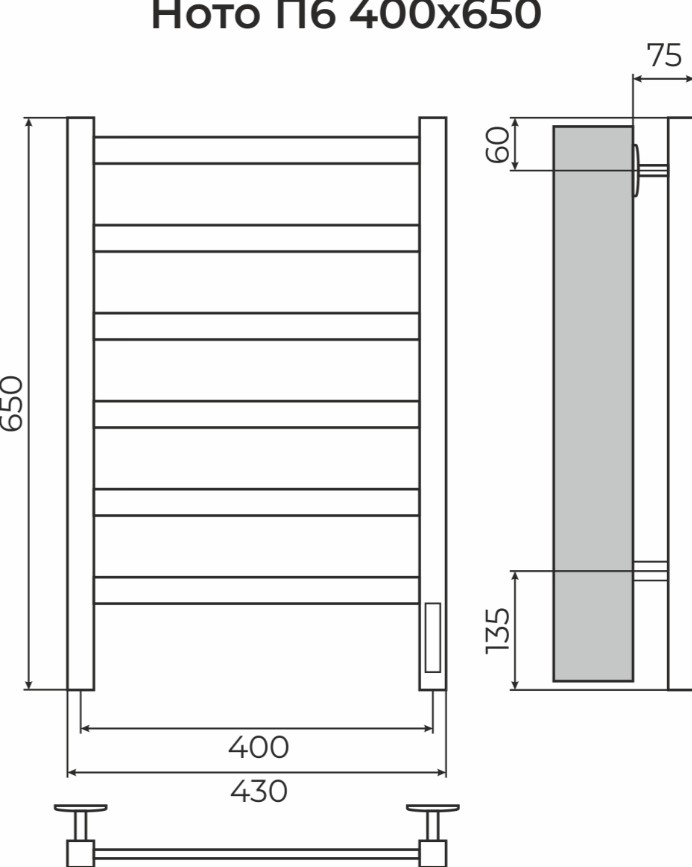 ПОЛОТЕНЦЕСУШИТЕЛЬ ЭЛЕКТРИЧЕСКИЙ TERMINUS НОТО 400Х650 П6 ХРОМ