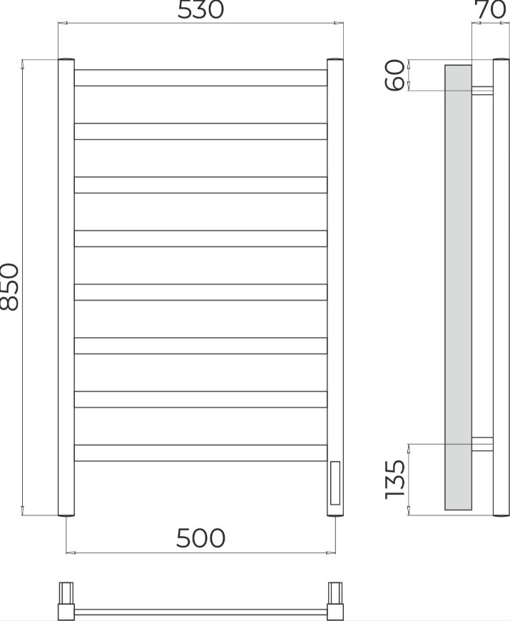 ПОЛОТЕНЦЕСУШИТЕЛЬ ЭЛЕКТРИЧЕСКИЙ TERMINUS НОТО 500Х850 П8 ХРОМ