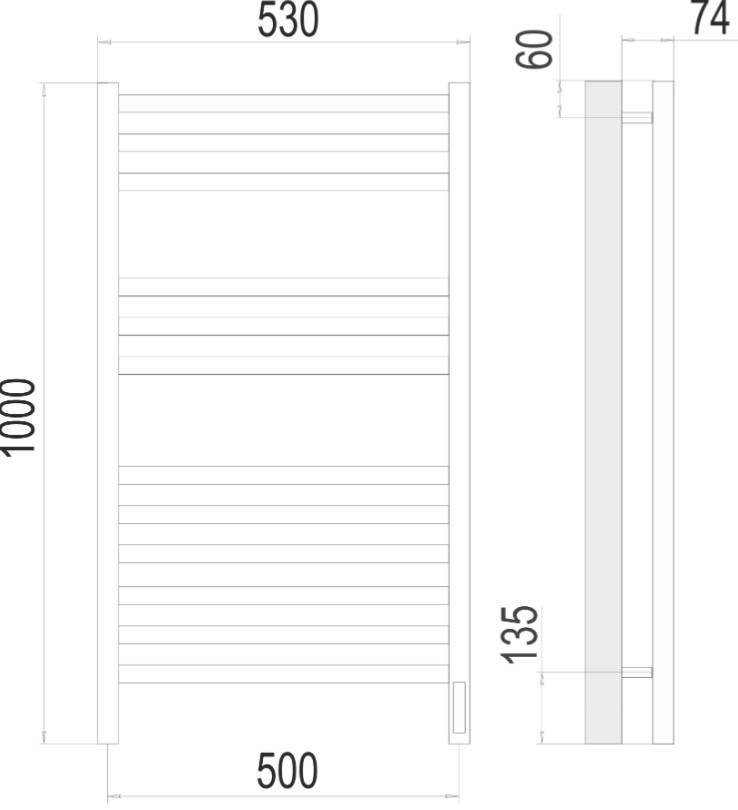ПОЛОТЕНЦЕСУШИТЕЛЬ ЭЛЕКТРИЧЕСКИЙ TERMINUS НОТО 500Х1000 П12 ХРОМ
