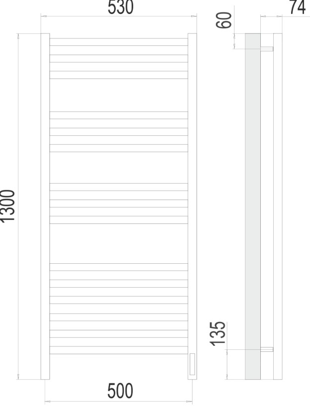ПОЛОТЕНЦЕСУШИТЕЛЬ ЭЛЕКТРИЧЕСКИЙ TERMINUS НОТО 500Х1300 П15 ХРОМ