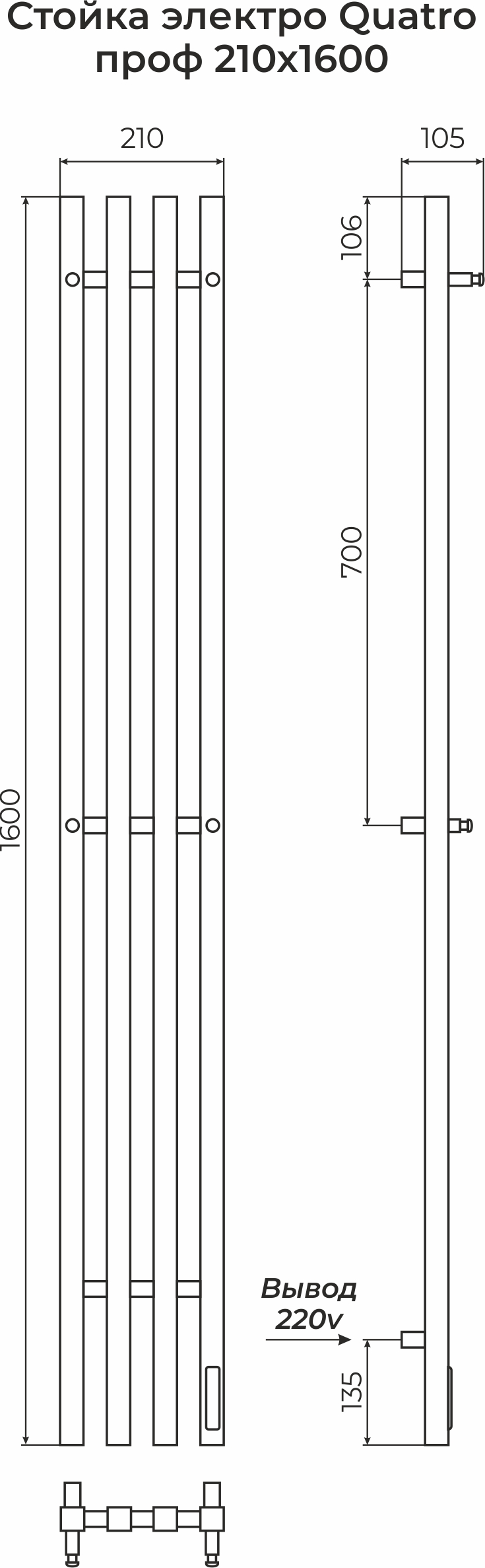 ПОЛОТЕНЦЕСУШИТЕЛЬ ЭЛЕКТРИЧЕСКИЙ TERMINUS СТОЙКА QUATRO КС ПРОФ 1600 П4 ЧЕРНЫЙ МАТОВЫЙ