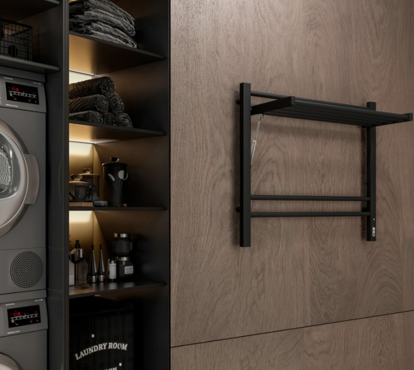 ПОЛОТЕНЦЕСУШИТЕЛЬ ЭЛЕКТРИЧЕСКИЙ TERMINUS ГОРИЗОНТ КС С ПОЛКОЙ 600Х600 П8 ЧЕРНЫЙ МУАР