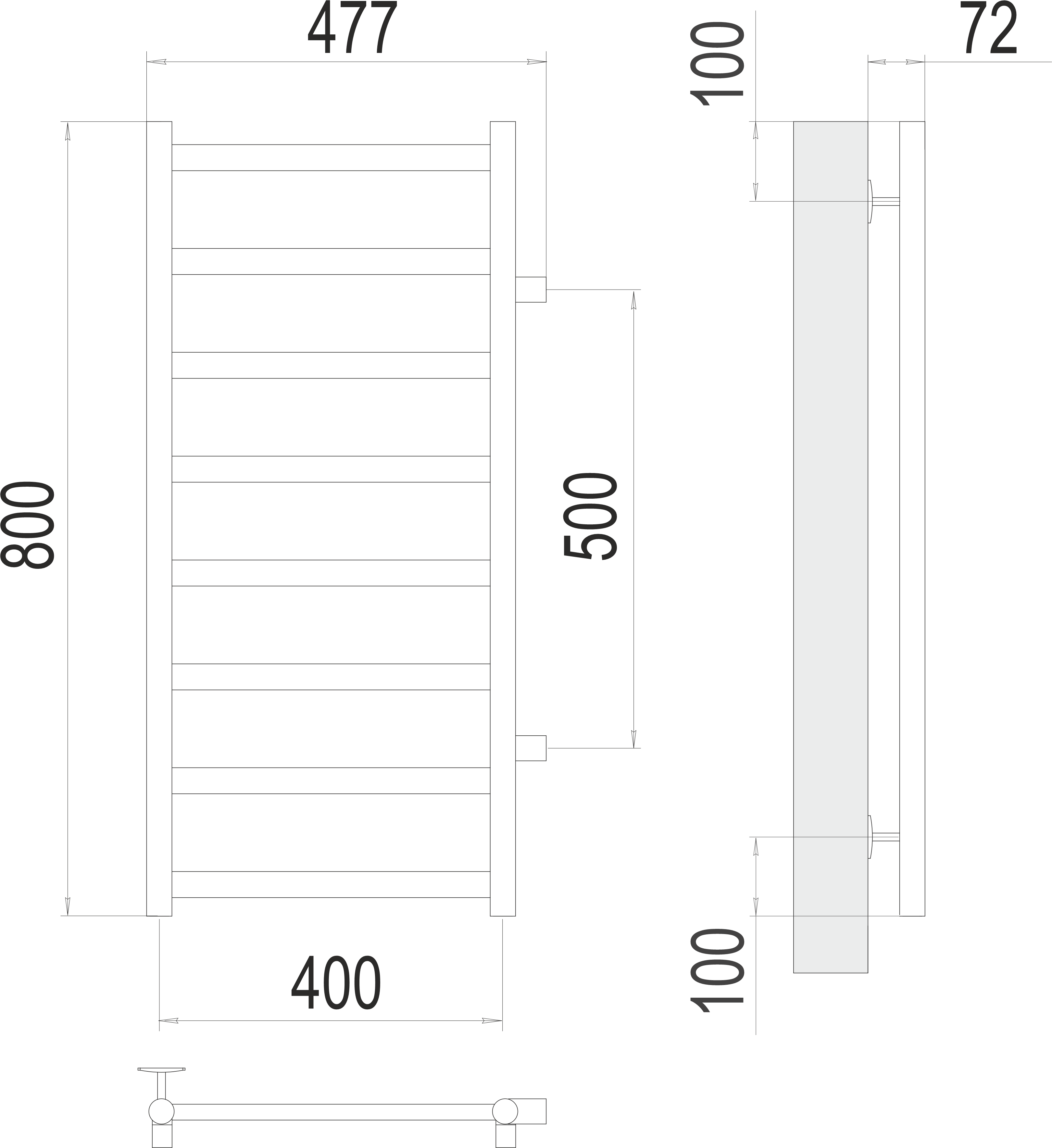ПОЛОТЕНЦЕСУШИТЕЛЬ ВОДЯНОЙ TERMINUS АВРОРА 400X800 П8 БОКОВОЕ ПОДКЛЮЧЕНИЕ 500