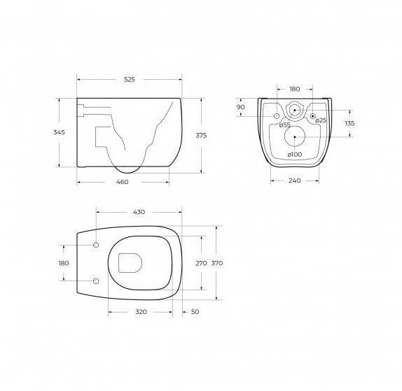 Унитаз подвесной безободковый с сиденьем и смывом TORNADO
