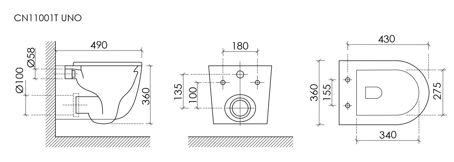 УНИТАЗ ПОДВЕСНОЙ CERAMICANOVA UNO ТОРНАДО МИКРОЛИФТ ЧЕРНЫЙ МАТОВЫЙ