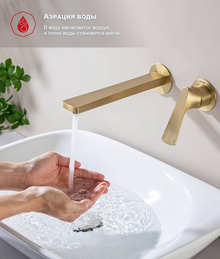 СМЕСИТЕЛЬ ДЛЯ РАКОВИНЫ RAGLO R07.11.03 ВСТРАИВАЕМЫЙ ЗОЛОТО САТИН