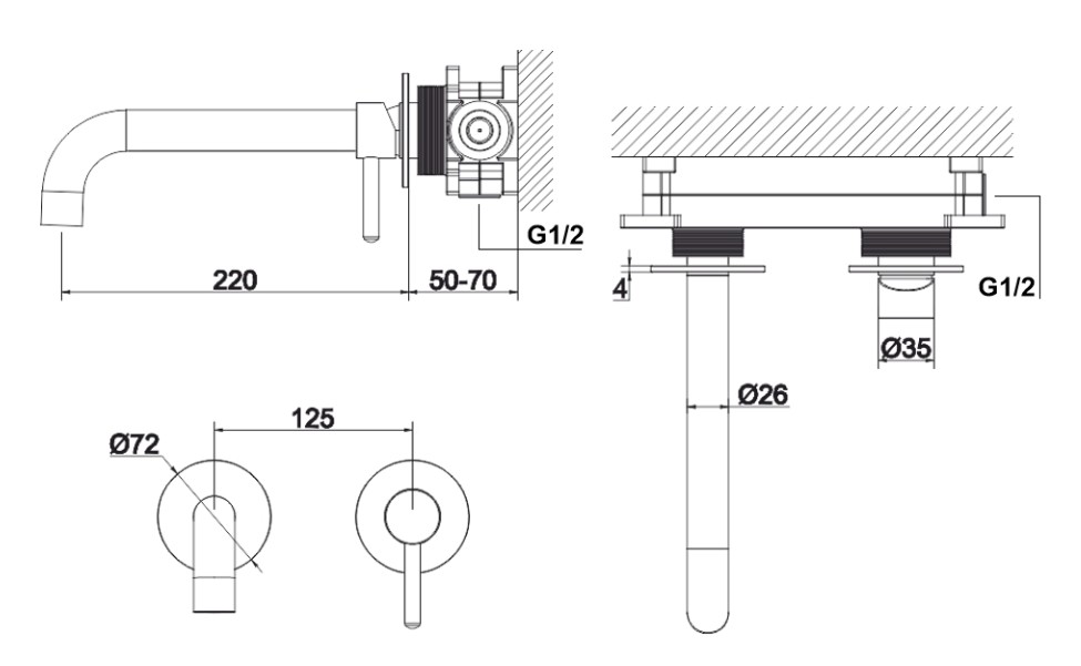 - длина излива 220 мм;