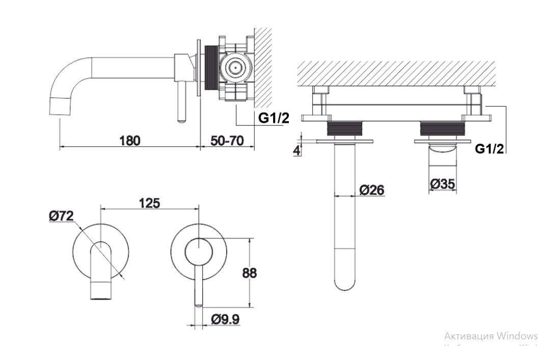 - длина излива 180 мм;