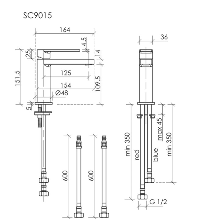 Гибкая подводка в оплетке из нержавеющей стали, с увеличенной длиной - 600 мм