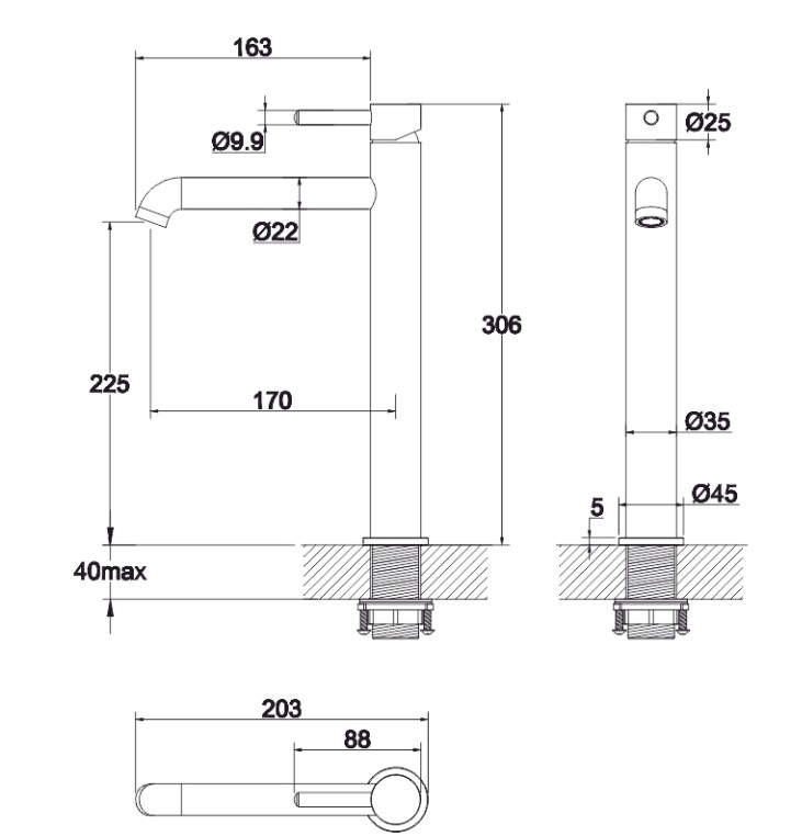 СМЕСИТЕЛЬ ДЛЯ РАКОВИНЫ WHITECROSS Y1212GM ВЫСОКИЙ ОРУЖЕЙНАЯ СТАЛЬ