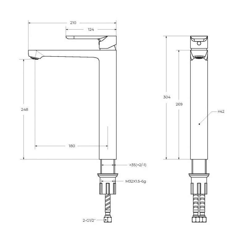 Высота до излива: 24,8 см