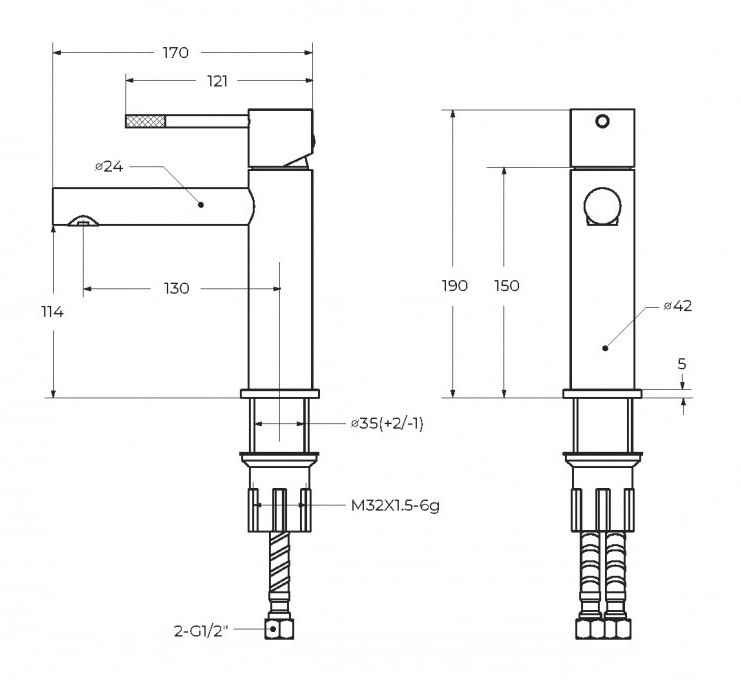 Тип подводки: гибкая 1/2"