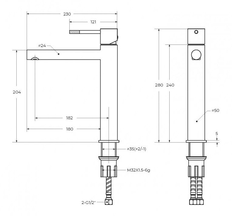 Тип подводки: гибкая 1/2"