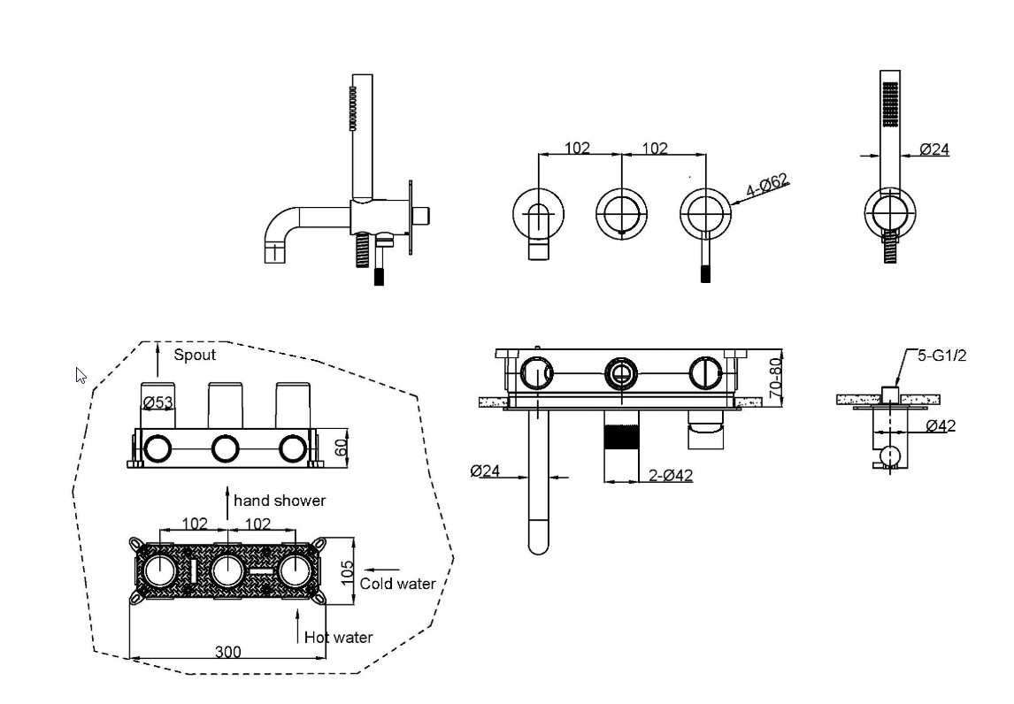 СМЕСИТЕЛЬ ДЛЯ ВАННЫ BOHEME UNO ВСТРАИВАЕМЫЙ ЧЕРНЫЙ МАТОВЫЙ