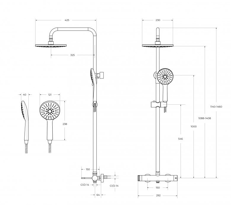 Дополнительная информация: регулируемая высота верхнего душа